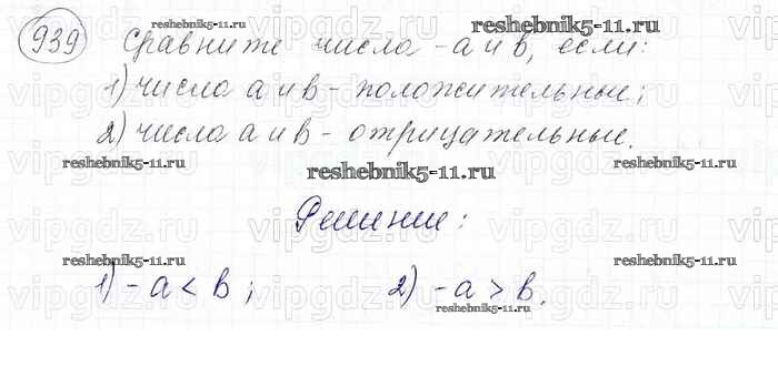 Готовая домашняя работа с ответами по Математике за 6 класс Мерзляк, Полонский, Якир Учебник Алгоритм успеха Вентана-граф 2016 ФГОС - Глава 4. Рациональные числа и действия над ними (упражнения) 939
