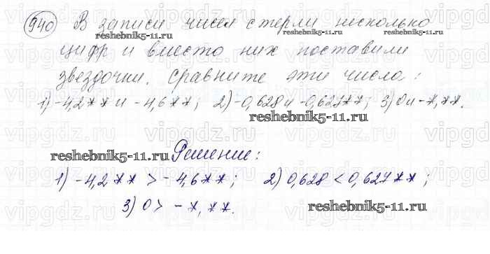Готовая домашняя работа с ответами по Математике за 6 класс Мерзляк, Полонский, Якир Учебник Алгоритм успеха Вентана-граф 2016 ФГОС - Глава 4. Рациональные числа и действия над ними (упражнения) 940