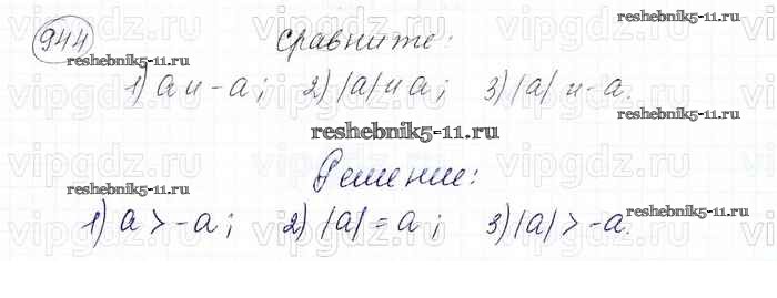 Готовая домашняя работа с ответами по Математике за 6 класс Мерзляк, Полонский, Якир Учебник Алгоритм успеха Вентана-граф 2016 ФГОС - Глава 4. Рациональные числа и действия над ними (упражнения) 944