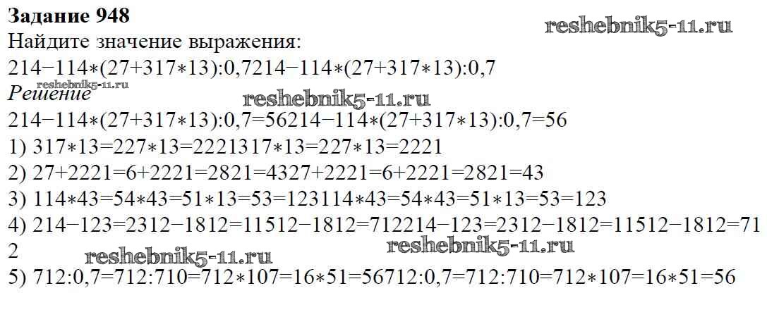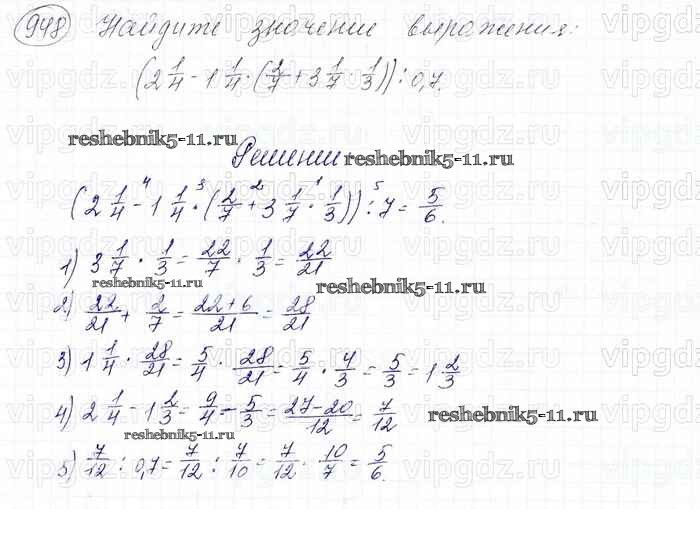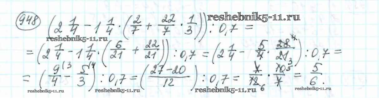 Готовая домашняя работа с ответами по Математике за 6 класс Мерзляк, Полонский, Якир Учебник Алгоритм успеха Вентана-граф 2016 ФГОС - Глава 4. Рациональные числа и действия над ними (упражнения) 948