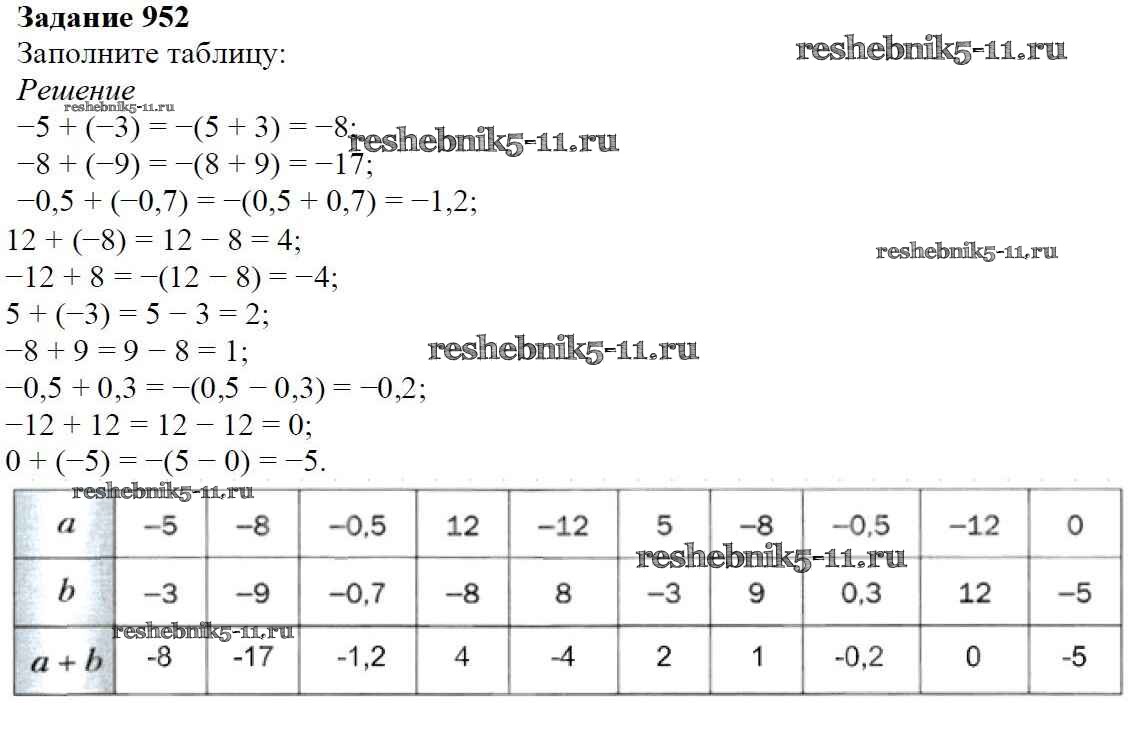 Готовая домашняя работа с ответами по Математике за 6 класс Мерзляк, Полонский, Якир Учебник Алгоритм успеха Вентана-граф 2016 ФГОС - Глава 4. Рациональные числа и действия над ними (упражнения) 952