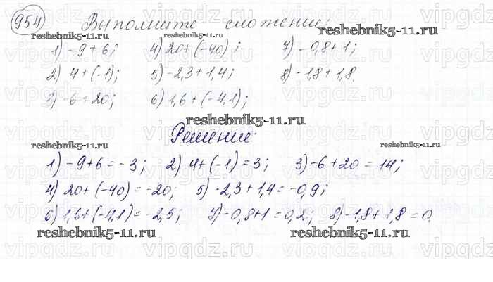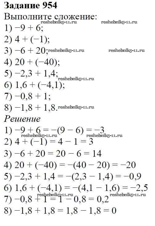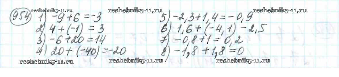 Готовая домашняя работа с ответами по Математике за 6 класс Мерзляк, Полонский, Якир Учебник Алгоритм успеха Вентана-граф 2016 ФГОС - Глава 4. Рациональные числа и действия над ними (упражнения) 954