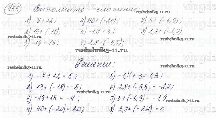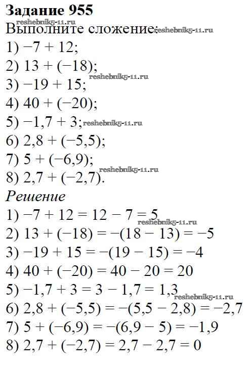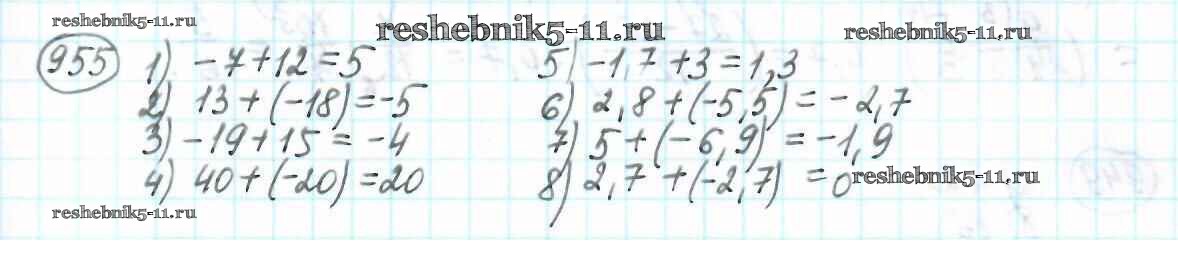 Готовая домашняя работа с ответами по Математике за 6 класс Мерзляк, Полонский, Якир Учебник Алгоритм успеха Вентана-граф 2016 ФГОС - Глава 4. Рациональные числа и действия над ними (упражнения) 955