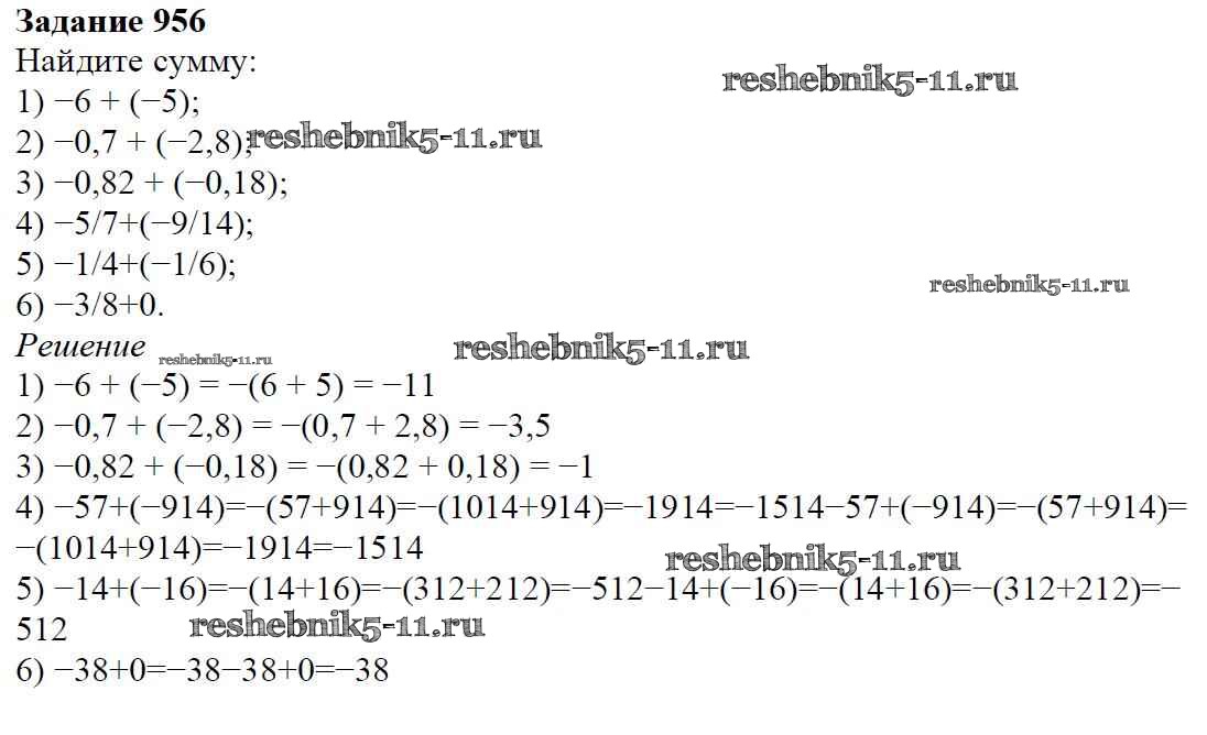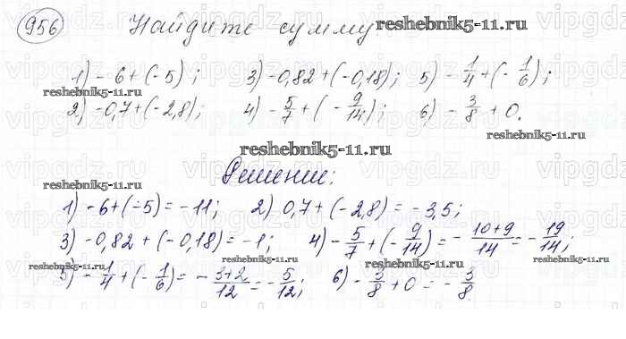 Готовая домашняя работа с ответами по Математике за 6 класс Мерзляк, Полонский, Якир Учебник Алгоритм успеха Вентана-граф 2016 ФГОС - Глава 4. Рациональные числа и действия над ними (упражнения) 956