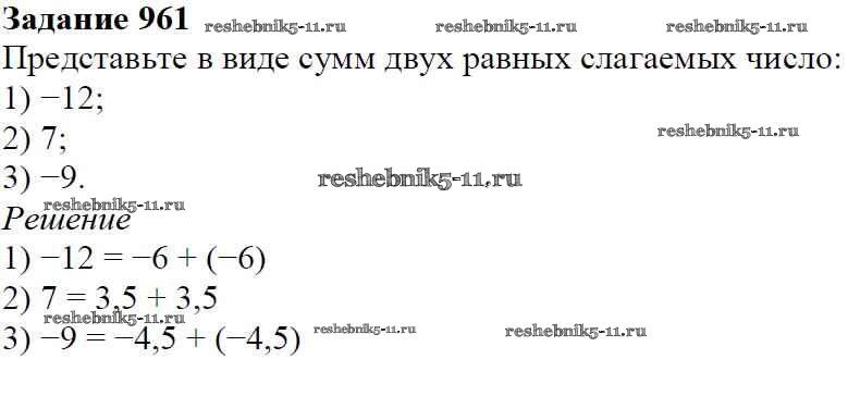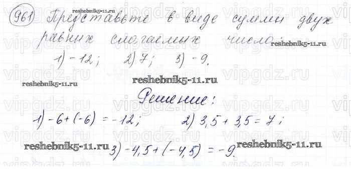Готовая домашняя работа с ответами по Математике за 6 класс Мерзляк, Полонский, Якир Учебник Алгоритм успеха Вентана-граф 2016 ФГОС - Глава 4. Рациональные числа и действия над ними (упражнения) 961