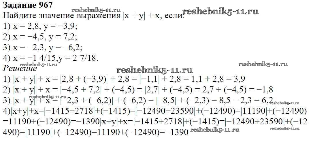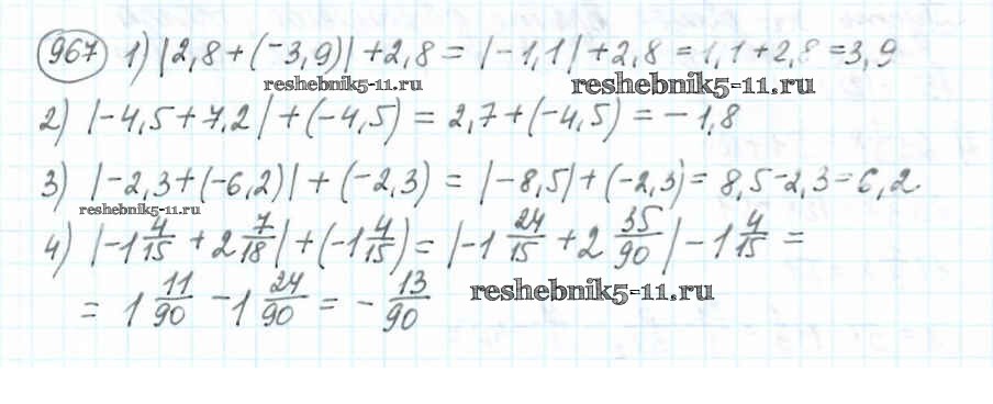 Готовая домашняя работа с ответами по Математике за 6 класс Мерзляк, Полонский, Якир Учебник Алгоритм успеха Вентана-граф 2016 ФГОС - Глава 4. Рациональные числа и действия над ними (упражнения) 967