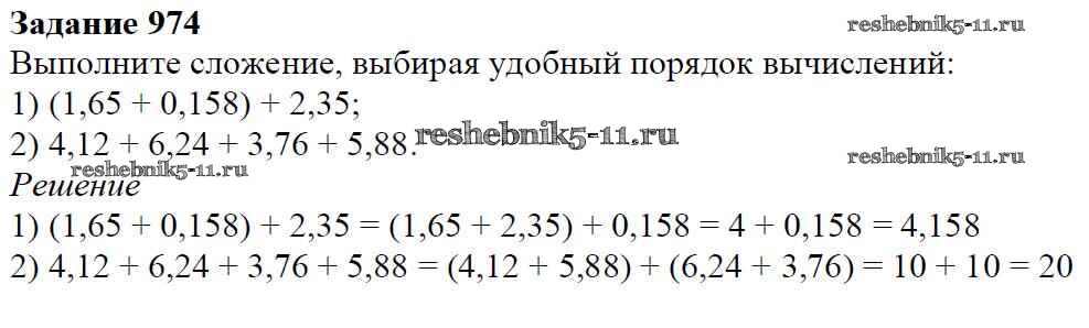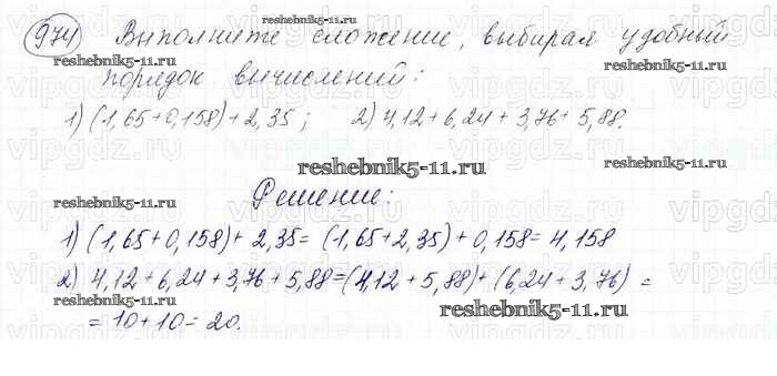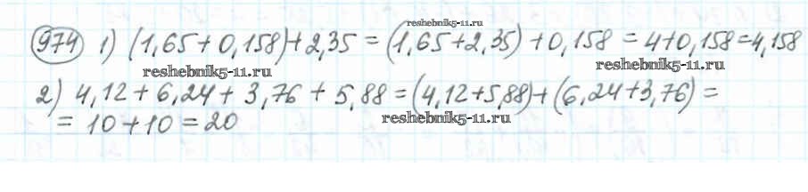 Готовая домашняя работа с ответами по Математике за 6 класс Мерзляк, Полонский, Якир Учебник Алгоритм успеха Вентана-граф 2016 ФГОС - Глава 4. Рациональные числа и действия над ними (упражнения) 974