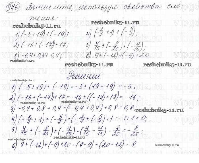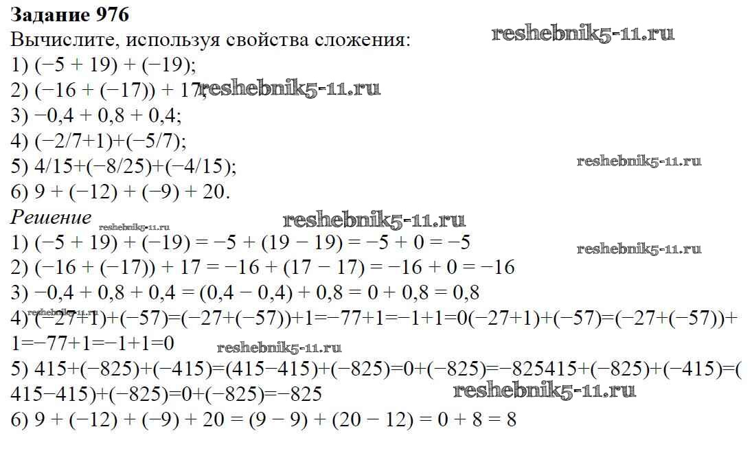 Готовая домашняя работа с ответами по Математике за 6 класс Мерзляк, Полонский, Якир Учебник Алгоритм успеха Вентана-граф 2016 ФГОС - Глава 4. Рациональные числа и действия над ними (упражнения) 976
