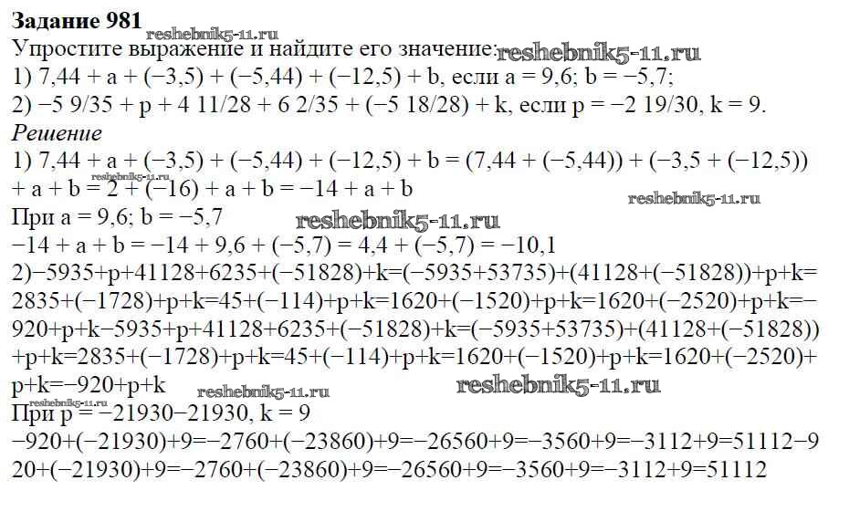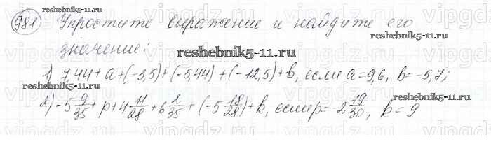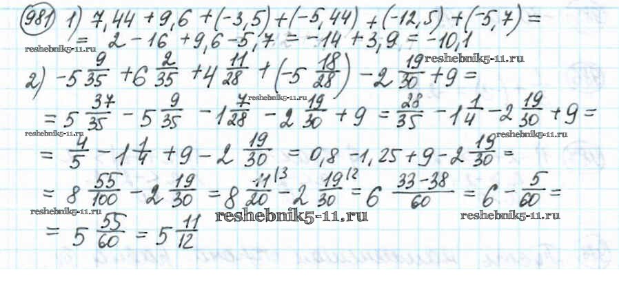 Готовая домашняя работа с ответами по Математике за 6 класс Мерзляк, Полонский, Якир Учебник Алгоритм успеха Вентана-граф 2016 ФГОС - Глава 4. Рациональные числа и действия над ними (упражнения) 981