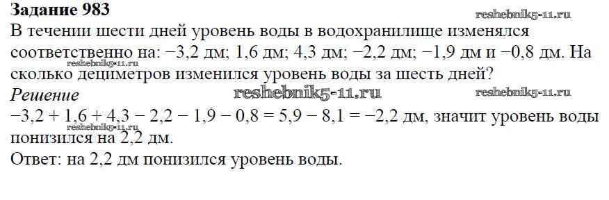 Готовая домашняя работа с ответами по Математике за 6 класс Мерзляк, Полонский, Якир Учебник Алгоритм успеха Вентана-граф 2016 ФГОС - Глава 4. Рациональные числа и действия над ними (упражнения) 983