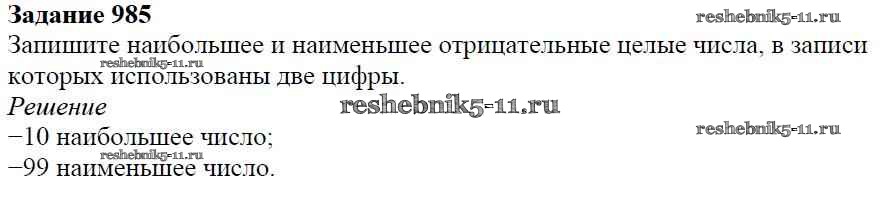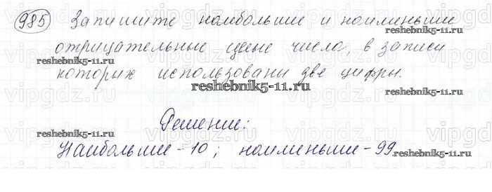 Готовая домашняя работа с ответами по Математике за 6 класс Мерзляк, Полонский, Якир Учебник Алгоритм успеха Вентана-граф 2016 ФГОС - Глава 4. Рациональные числа и действия над ними (упражнения) 985