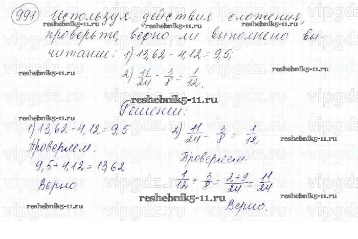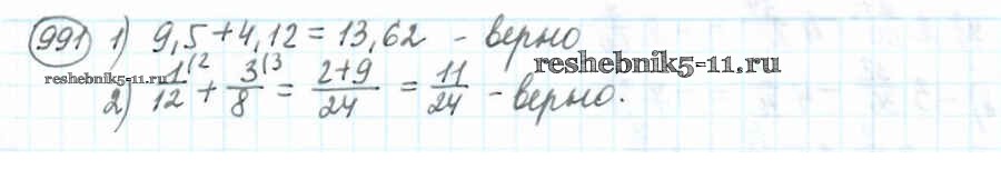 Готовая домашняя работа с ответами по Математике за 6 класс Мерзляк, Полонский, Якир Учебник Алгоритм успеха Вентана-граф 2016 ФГОС - Глава 4. Рациональные числа и действия над ними (упражнения) 991