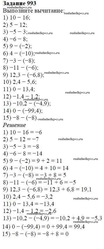 Готовая домашняя работа с ответами по Математике за 6 класс Мерзляк, Полонский, Якир Учебник Алгоритм успеха Вентана-граф 2016 ФГОС - Глава 4. Рациональные числа и действия над ними (упражнения) 993