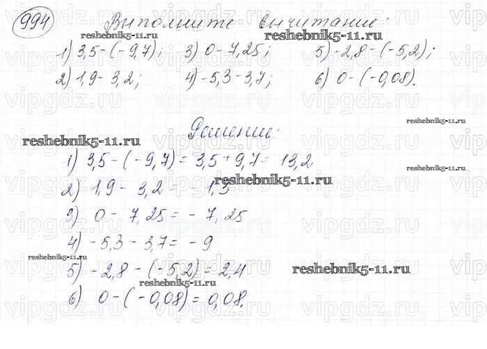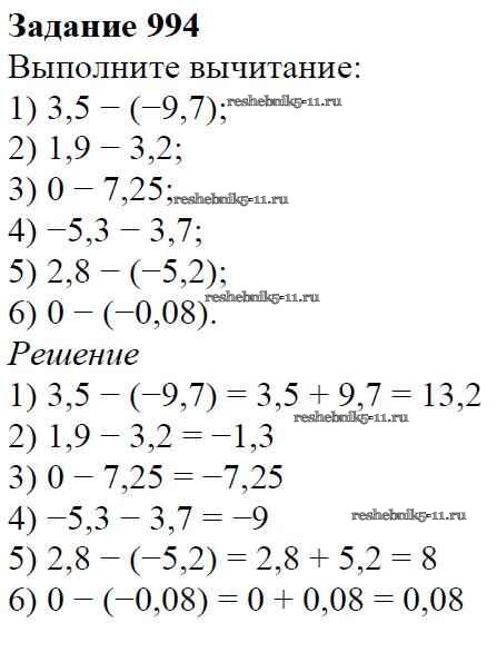 Готовая домашняя работа с ответами по Математике за 6 класс Мерзляк, Полонский, Якир Учебник Алгоритм успеха Вентана-граф 2016 ФГОС - Глава 4. Рациональные числа и действия над ними (упражнения) 994