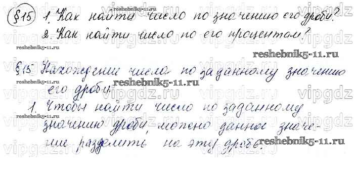 Готовая домашняя работа с ответами по Математике за 6 класс Мерзляк, Полонский, Якир Учебник Алгоритм успеха Вентана-граф 2016 ФГОС - Вопросы к параграфам 15