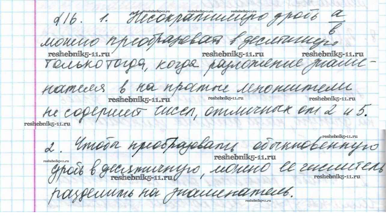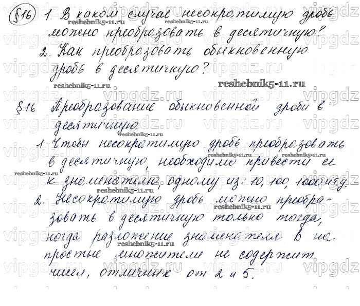 Готовая домашняя работа с ответами по Математике за 6 класс Мерзляк, Полонский, Якир Учебник Алгоритм успеха Вентана-граф 2016 ФГОС - Вопросы к параграфам 16