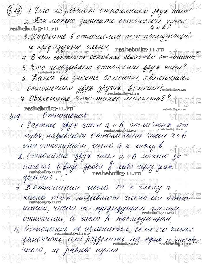 Готовая домашняя работа с ответами по Математике за 6 класс Мерзляк, Полонский, Якир Учебник Алгоритм успеха Вентана-граф 2016 ФГОС - Вопросы к параграфам 19