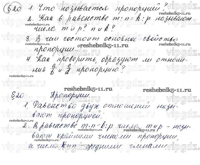Готовая домашняя работа с ответами по Математике за 6 класс Мерзляк, Полонский, Якир Учебник Алгоритм успеха Вентана-граф 2016 ФГОС - Вопросы к параграфам 20