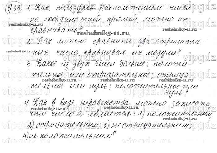 Готовая домашняя работа с ответами по Математике за 6 класс Мерзляк, Полонский, Якир Учебник Алгоритм успеха Вентана-граф 2016 ФГОС - Вопросы к параграфам 33
