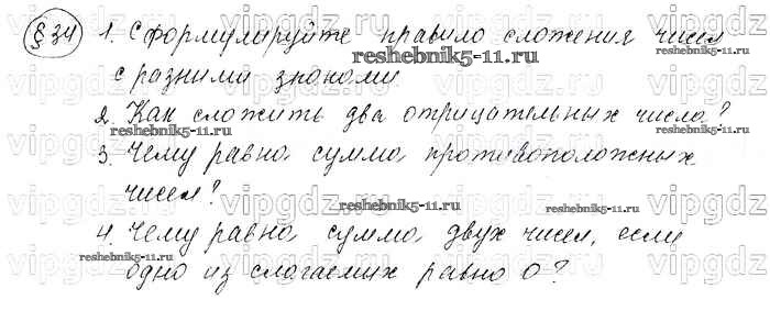 Готовая домашняя работа с ответами по Математике за 6 класс Мерзляк, Полонский, Якир Учебник Алгоритм успеха Вентана-граф 2016 ФГОС - Вопросы к параграфам 34
