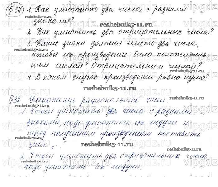 Готовая домашняя работа с ответами по Математике за 6 класс Мерзляк, Полонский, Якир Учебник Алгоритм успеха Вентана-граф 2016 ФГОС - Вопросы к параграфам 37