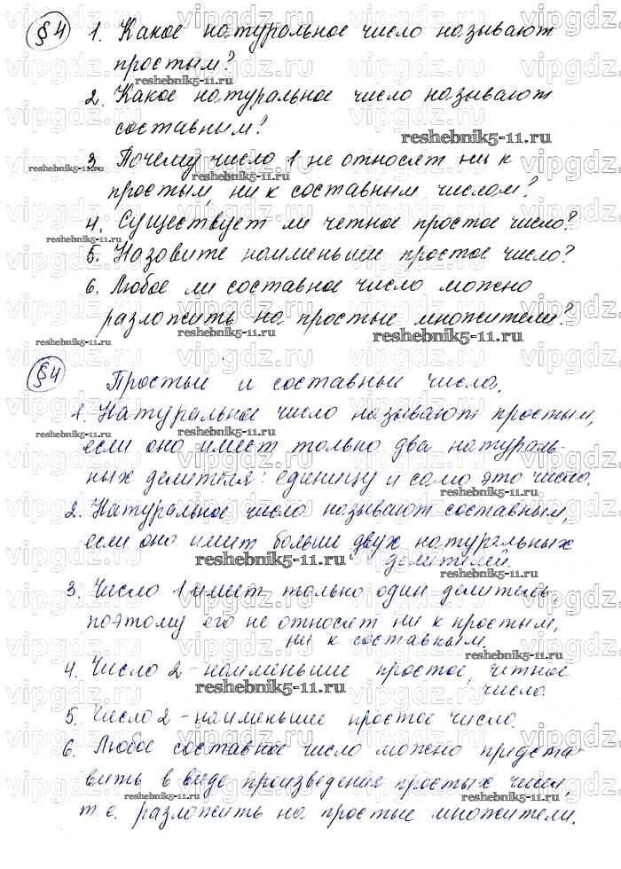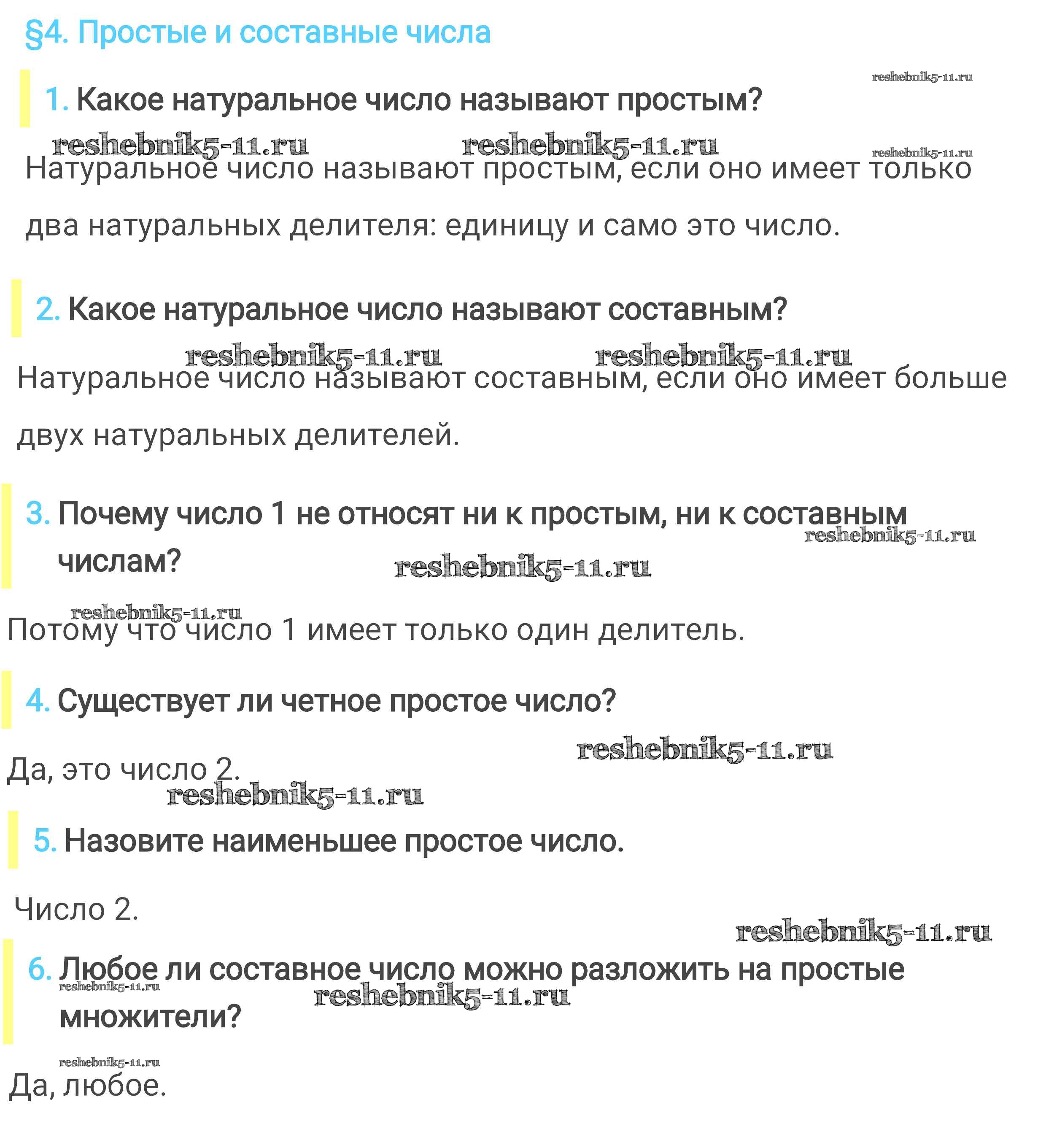 Готовая домашняя работа с ответами по Математике за 6 класс Мерзляк, Полонский, Якир Учебник Алгоритм успеха Вентана-граф 2016 ФГОС - Вопросы к параграфам 4