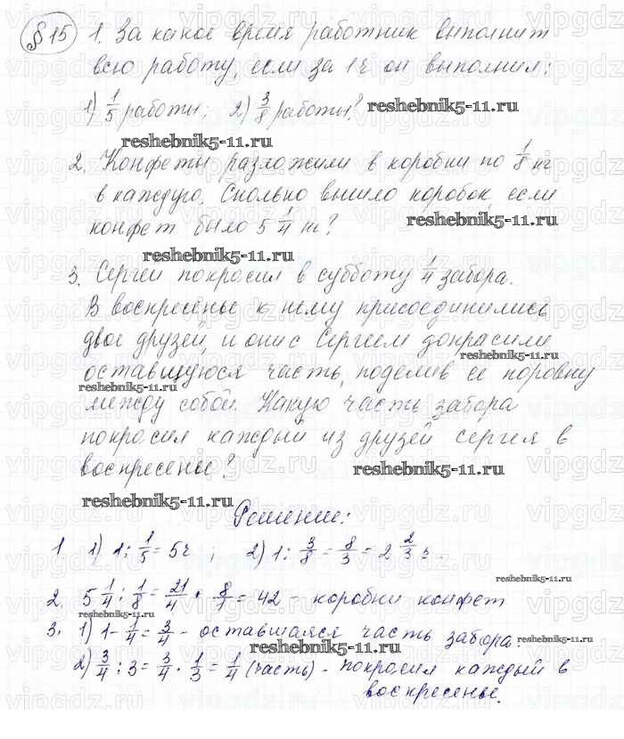 Готовая домашняя работа с ответами по Математике за 6 класс Мерзляк, Полонский, Якир Учебник Алгоритм успеха Вентана-граф 2016 ФГОС - Решаем устно 15