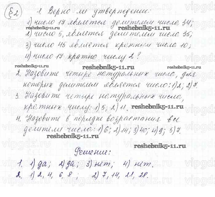 Готовая домашняя работа с ответами по Математике за 6 класс Мерзляк, Полонский, Якир Учебник Алгоритм успеха Вентана-граф 2016 ФГОС - Решаем устно 2
