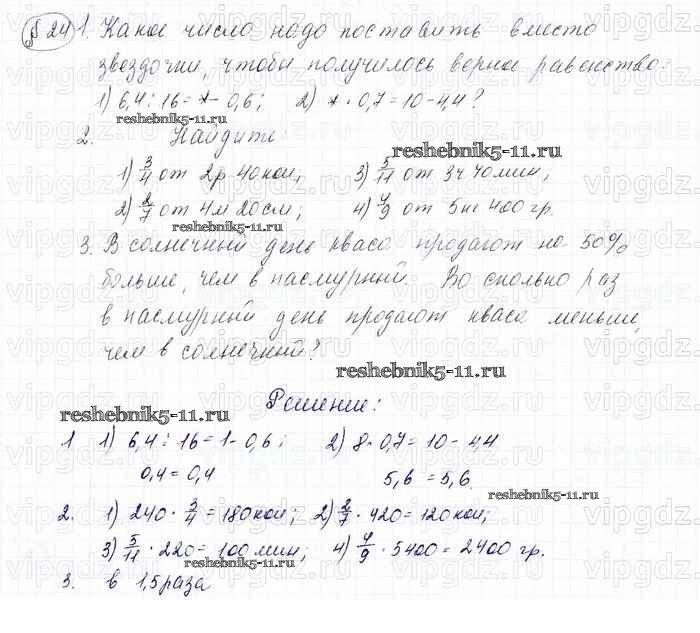 Готовая домашняя работа с ответами по Математике за 6 класс Мерзляк, Полонский, Якир Учебник Алгоритм успеха Вентана-граф 2016 ФГОС - Решаем устно 24