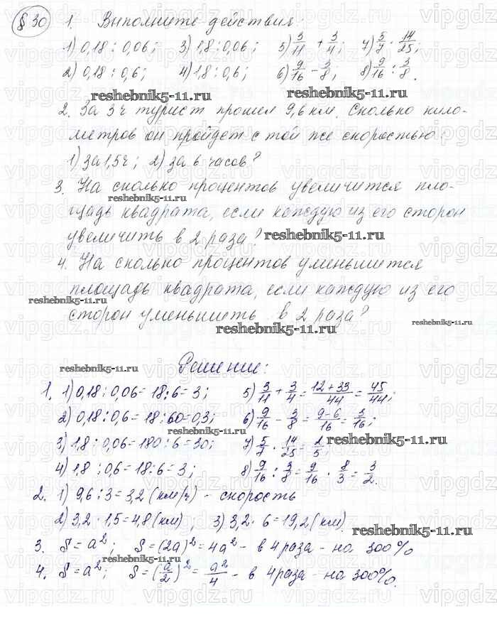 Готовая домашняя работа с ответами по Математике за 6 класс Мерзляк, Полонский, Якир Учебник Алгоритм успеха Вентана-граф 2016 ФГОС - Решаем устно 30