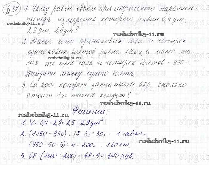 Готовая домашняя работа с ответами по Математике за 6 класс Мерзляк, Полонский, Якир Учебник Алгоритм успеха Вентана-граф 2016 ФГОС - Решаем устно 37