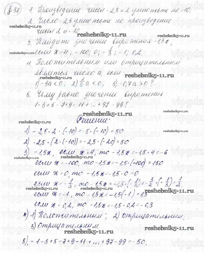 Готовая домашняя работа с ответами по Математике за 6 класс Мерзляк, Полонский, Якир Учебник Алгоритм успеха Вентана-граф 2016 ФГОС - Решаем устно 38