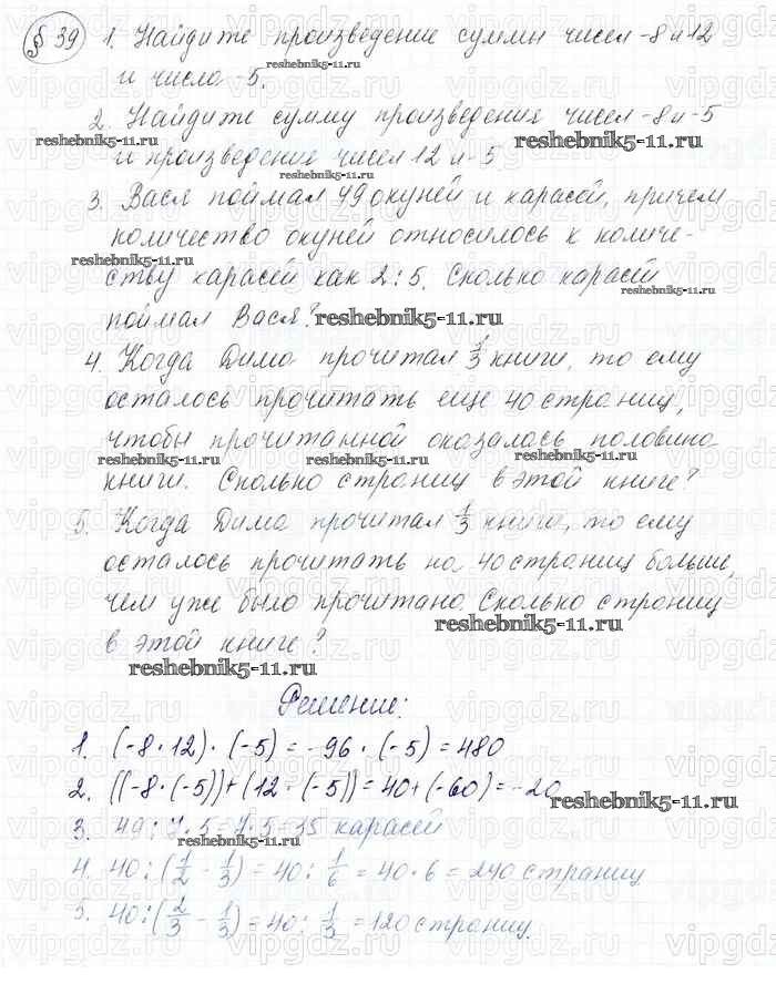 Готовая домашняя работа с ответами по Математике за 6 класс Мерзляк, Полонский, Якир Учебник Алгоритм успеха Вентана-граф 2016 ФГОС - Решаем устно 39
