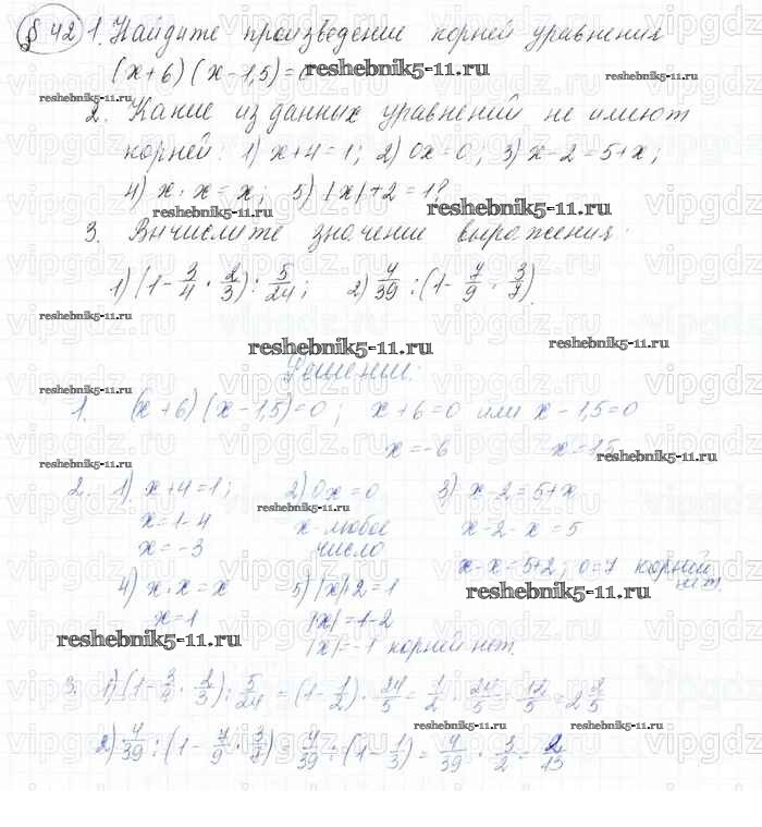 Готовая домашняя работа с ответами по Математике за 6 класс Мерзляк, Полонский, Якир Учебник Алгоритм успеха Вентана-граф 2016 ФГОС - Решаем устно 42