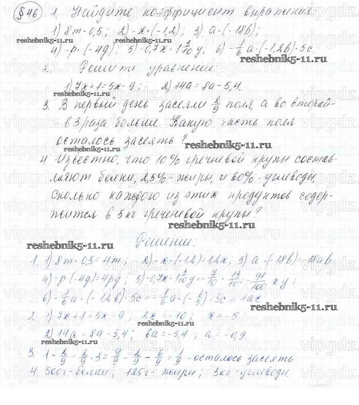 Готовая домашняя работа с ответами по Математике за 6 класс Мерзляк, Полонский, Якир Учебник Алгоритм успеха Вентана-граф 2016 ФГОС - Решаем устно 46