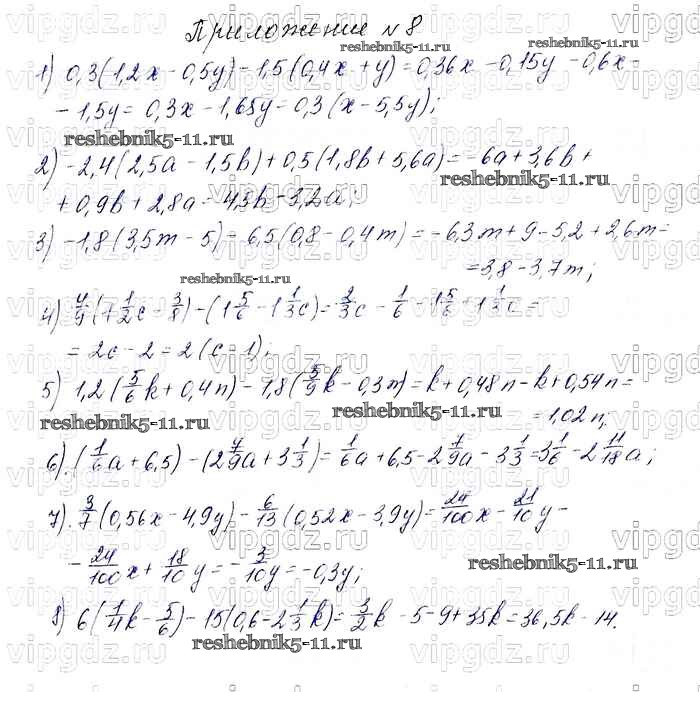 Готовая домашняя работа с ответами по Математике за 6 класс Мерзляк, Полонский, Якир Учебник Алгоритм успеха Вентана-граф 2016 ФГОС - Приложения к учебнику 8