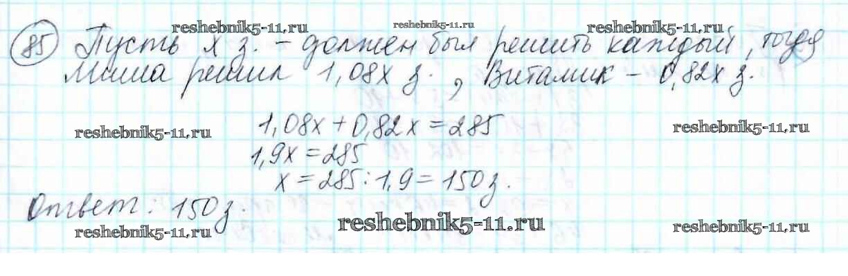 Готовая домашняя работа с ответами по Математике за 6 класс Мерзляк, Полонский, Якир Учебник Алгоритм успеха Вентана-граф 2016 ФГОС - Приложения к учебнику 85