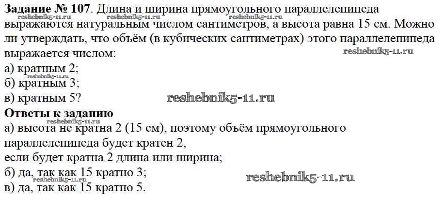 Готовая домашняя работа с ответами по Математике за 6 класс Виленкин, Жохов, Чесноков, Шварцбурд Учебник Мнемозина 2014 ФГОС - §1. Делимость чисел 107