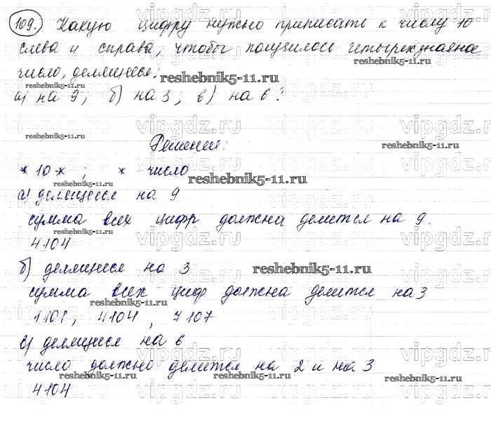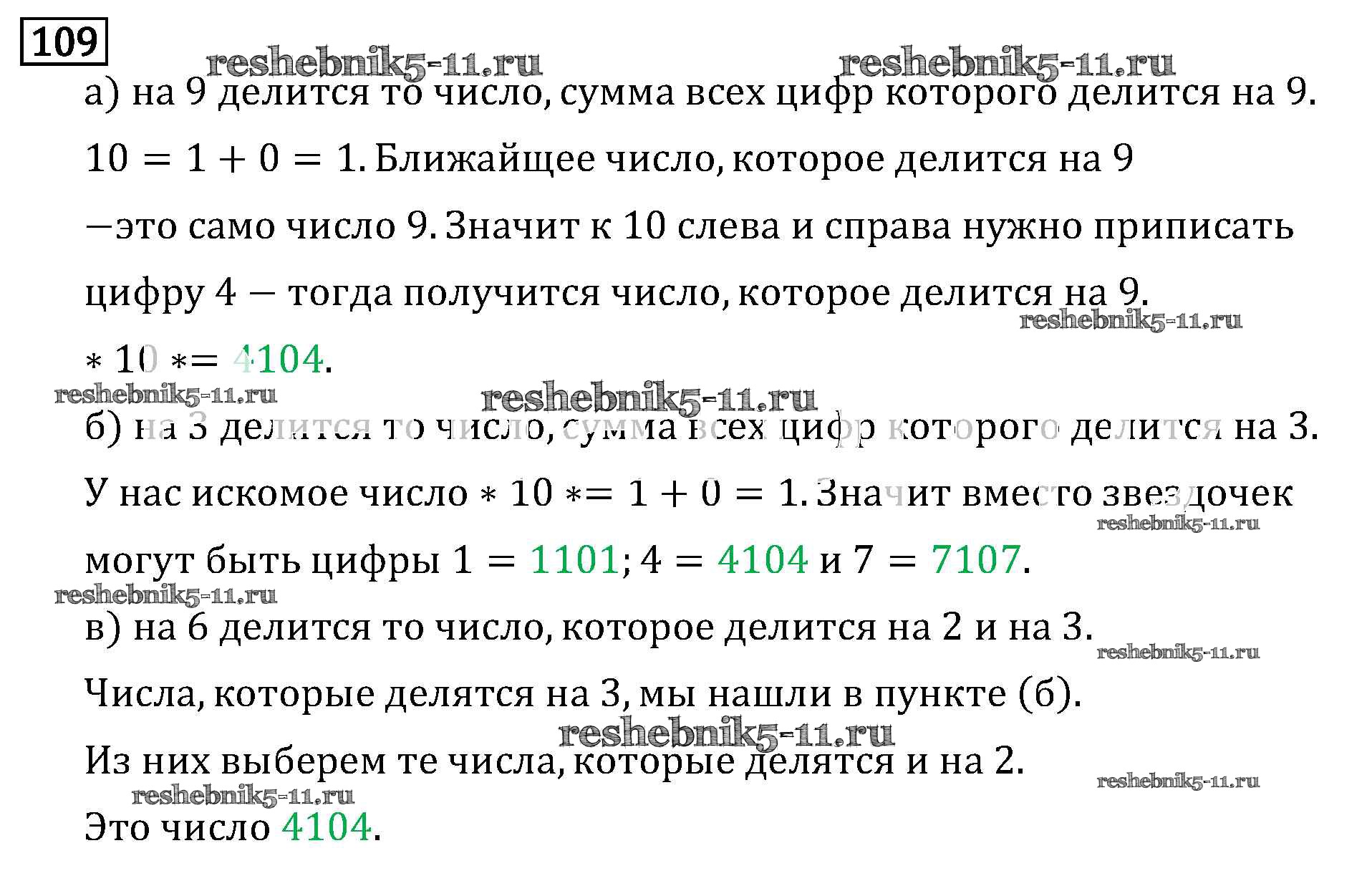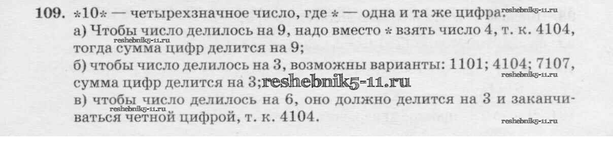 Готовая домашняя работа с ответами по Математике за 6 класс Виленкин, Жохов, Чесноков, Шварцбурд Учебник Мнемозина 2014 ФГОС - §1. Делимость чисел 109