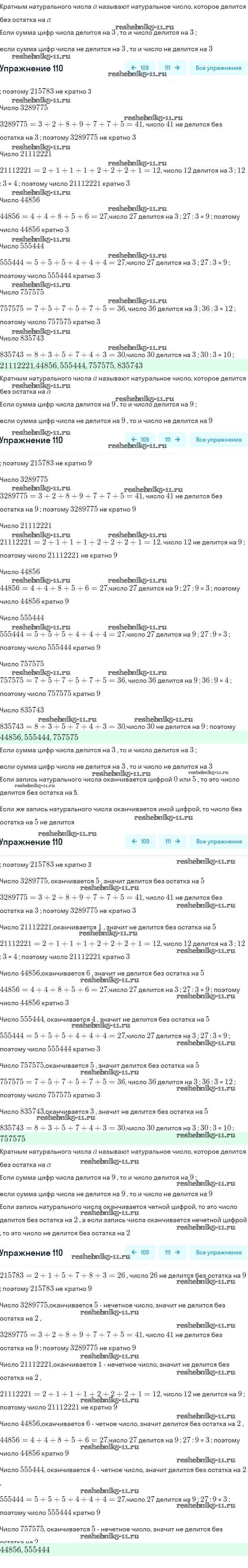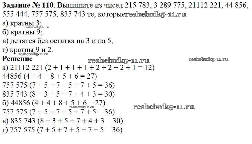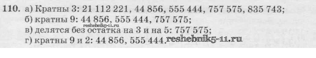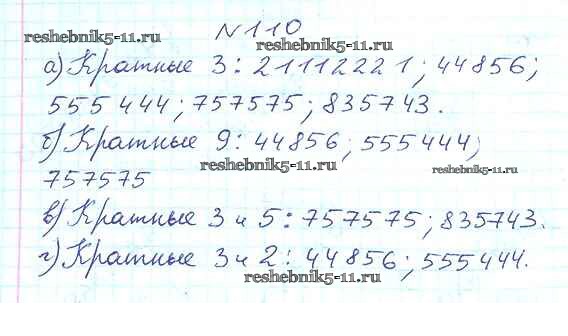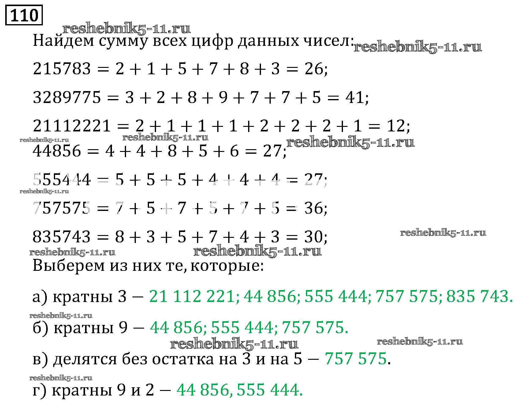 Готовая домашняя работа с ответами по Математике за 6 класс Виленкин, Жохов, Чесноков, Шварцбурд Учебник Мнемозина 2014 ФГОС - §1. Делимость чисел 110