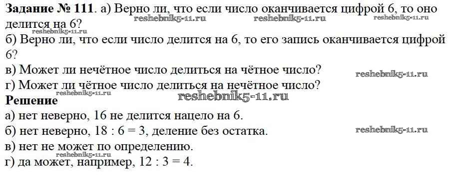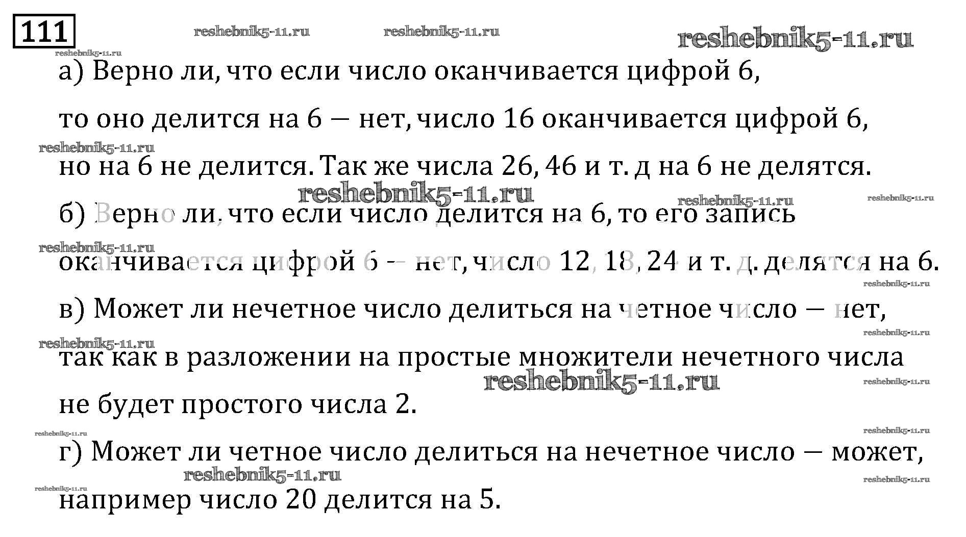 Готовая домашняя работа с ответами по Математике за 6 класс Виленкин, Жохов, Чесноков, Шварцбурд Учебник Мнемозина 2014 ФГОС - §1. Делимость чисел 111