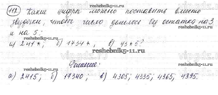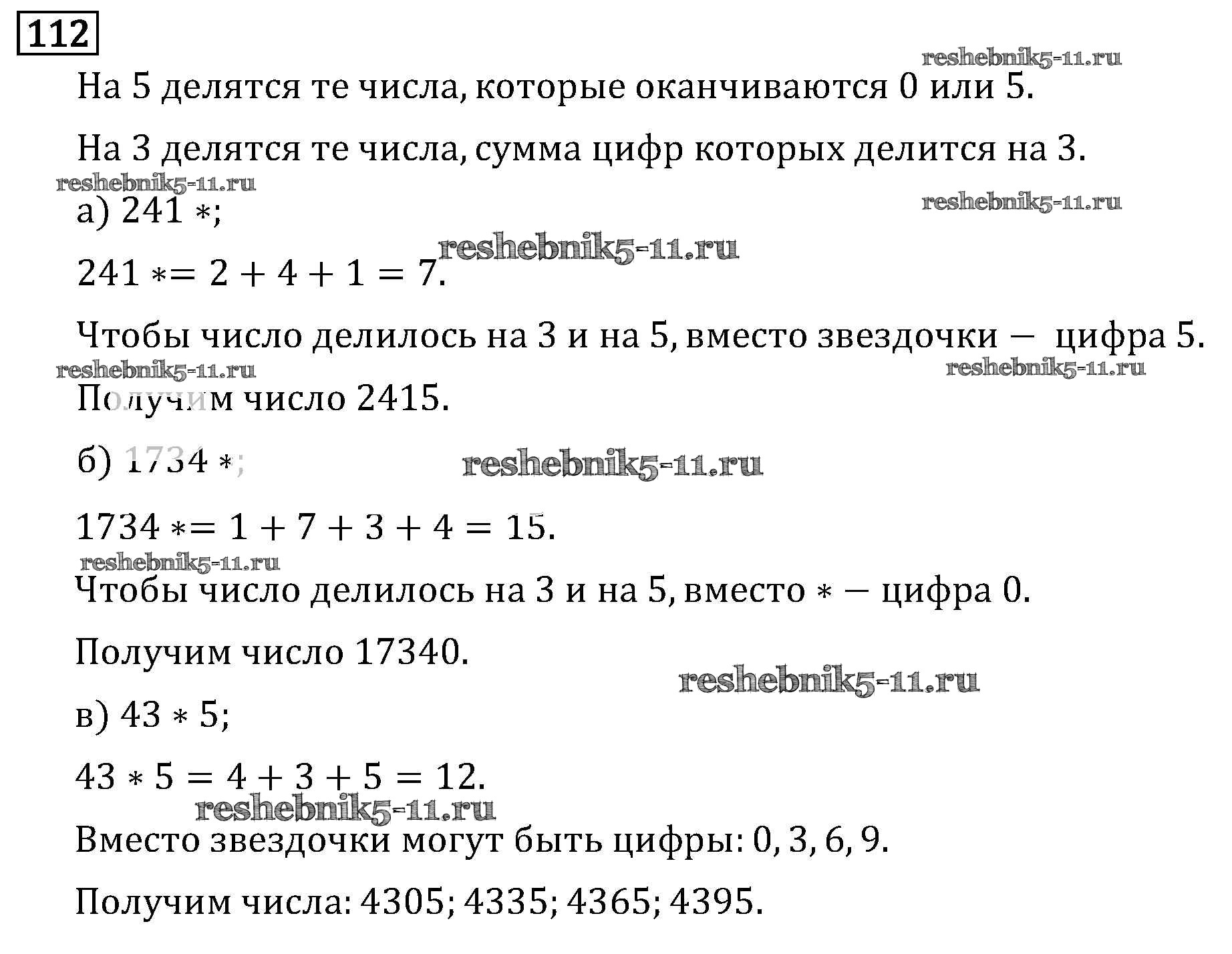 Готовая домашняя работа с ответами по Математике за 6 класс Виленкин, Жохов, Чесноков, Шварцбурд Учебник Мнемозина 2014 ФГОС - §1. Делимость чисел 112