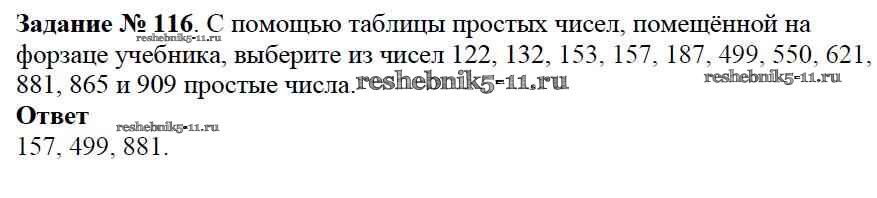 Готовая домашняя работа с ответами по Математике за 6 класс Виленкин, Жохов, Чесноков, Шварцбурд Учебник Мнемозина 2014 ФГОС - §1. Делимость чисел 116