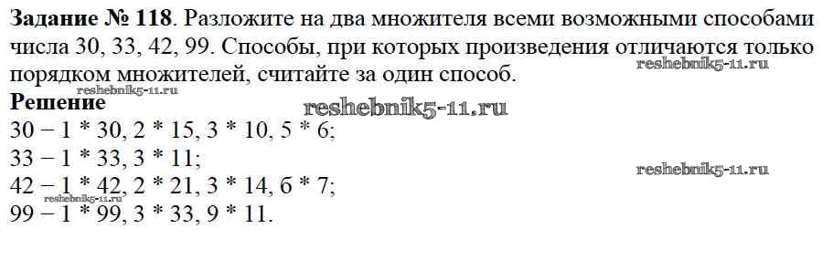 Готовая домашняя работа с ответами по Математике за 6 класс Виленкин, Жохов, Чесноков, Шварцбурд Учебник Мнемозина 2014 ФГОС - §1. Делимость чисел 118