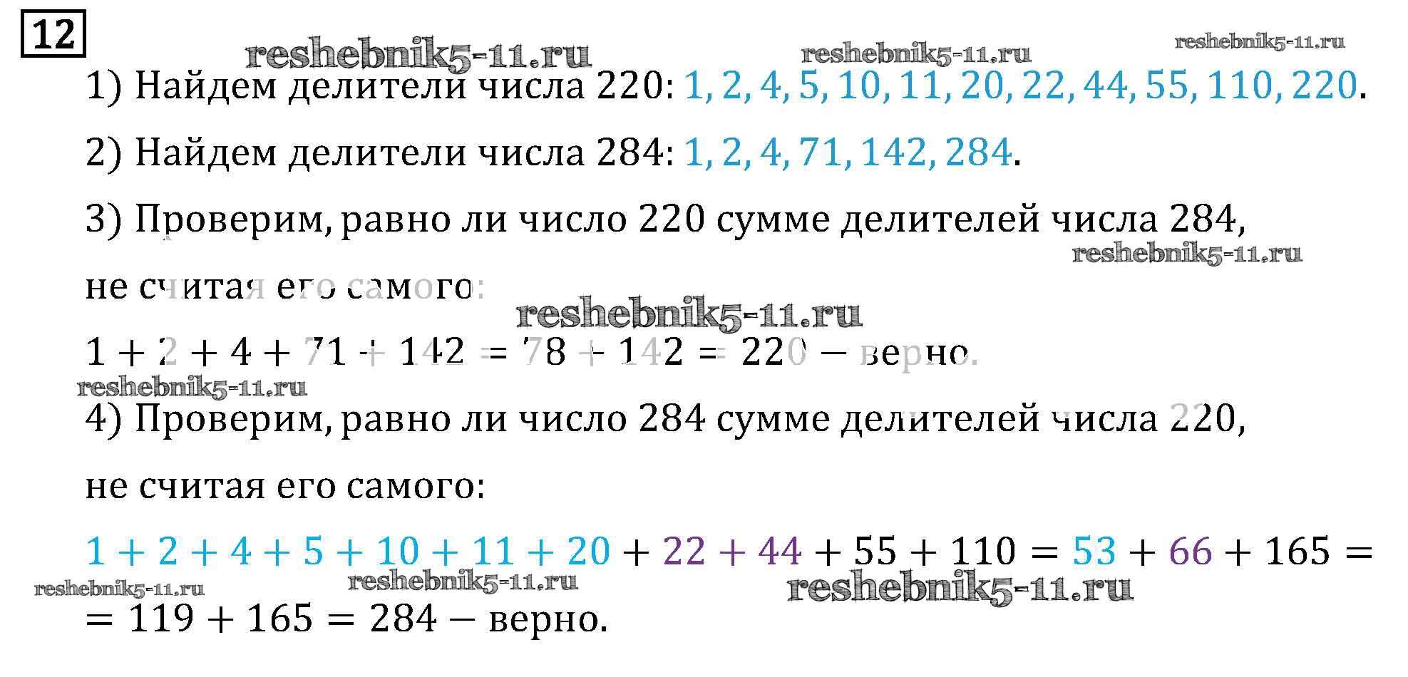 Готовая домашняя работа с ответами по Математике за 6 класс Виленкин, Жохов, Чесноков, Шварцбурд Учебник Мнемозина 2014 ФГОС - §1. Делимость чисел 12