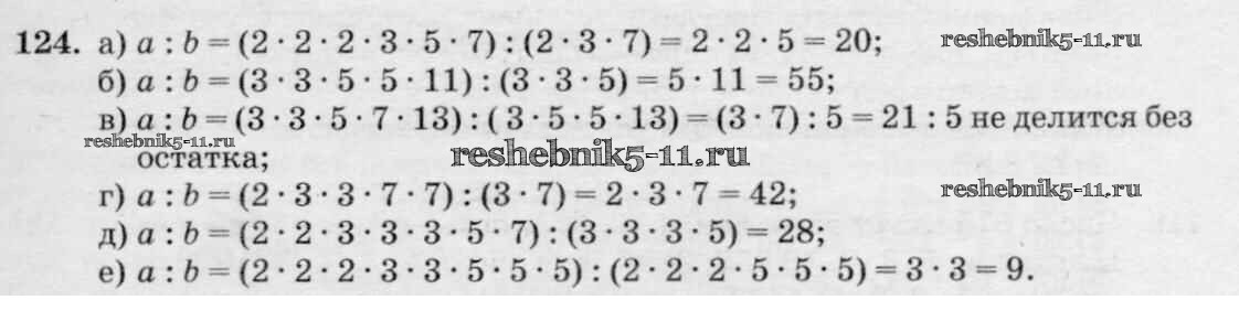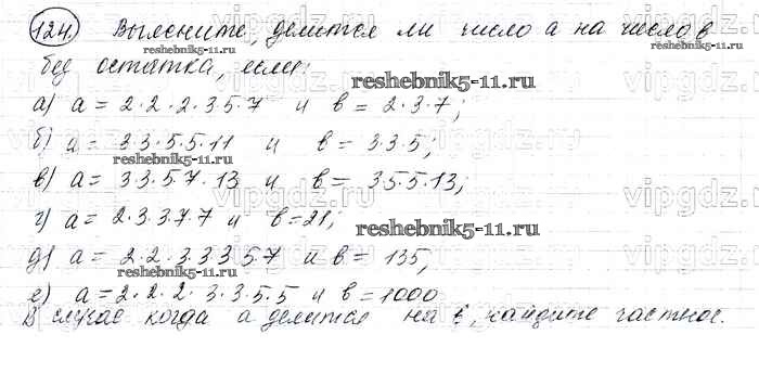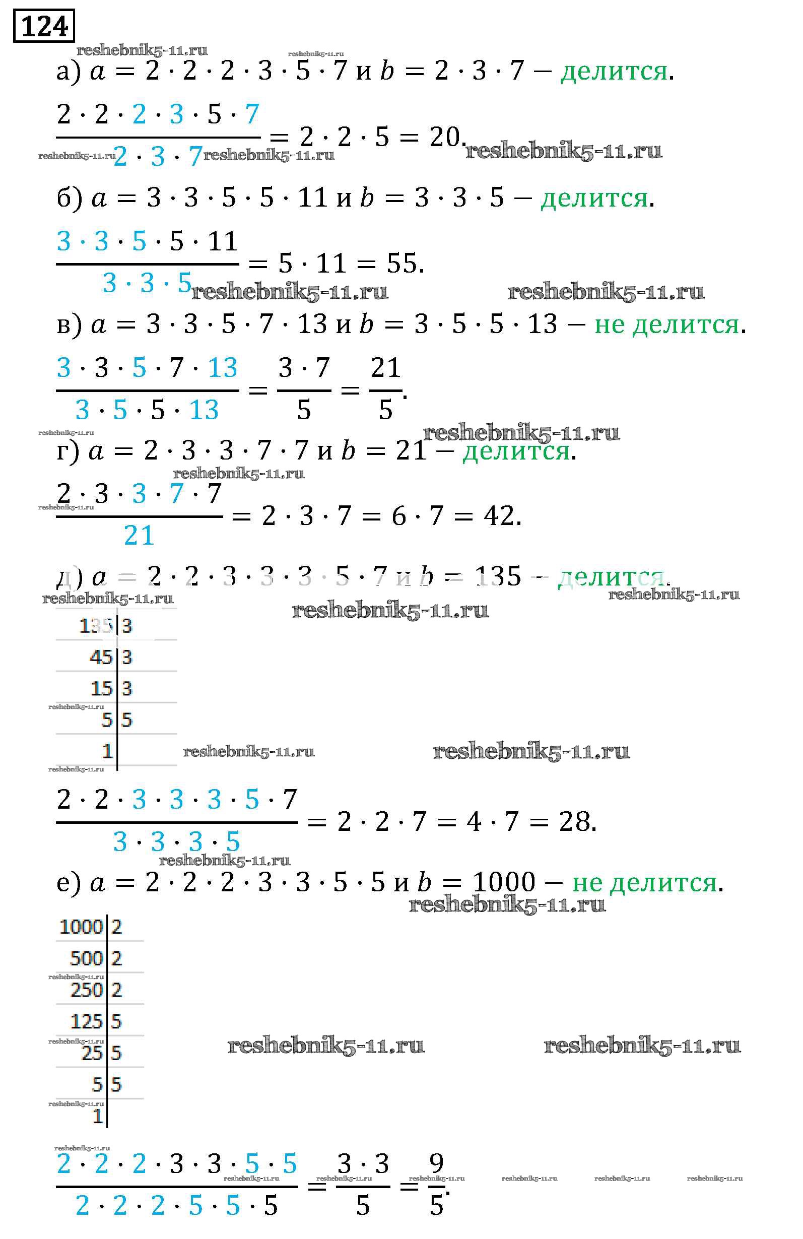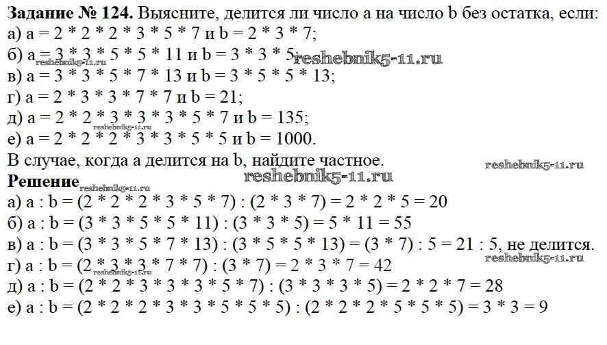 Готовая домашняя работа с ответами по Математике за 6 класс Виленкин, Жохов, Чесноков, Шварцбурд Учебник Мнемозина 2014 ФГОС - §1. Делимость чисел 124