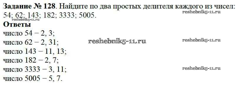 Готовая домашняя работа с ответами по Математике за 6 класс Виленкин, Жохов, Чесноков, Шварцбурд Учебник Мнемозина 2014 ФГОС - §1. Делимость чисел 128