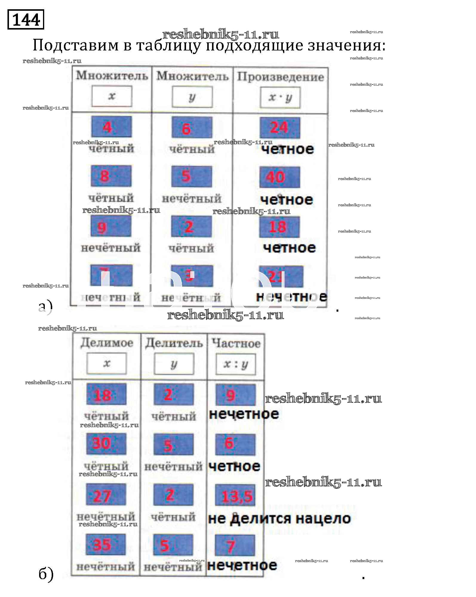 Готовая домашняя работа с ответами по Математике за 6 класс Виленкин, Жохов, Чесноков, Шварцбурд Учебник Мнемозина 2014 ФГОС - §1. Делимость чисел 144