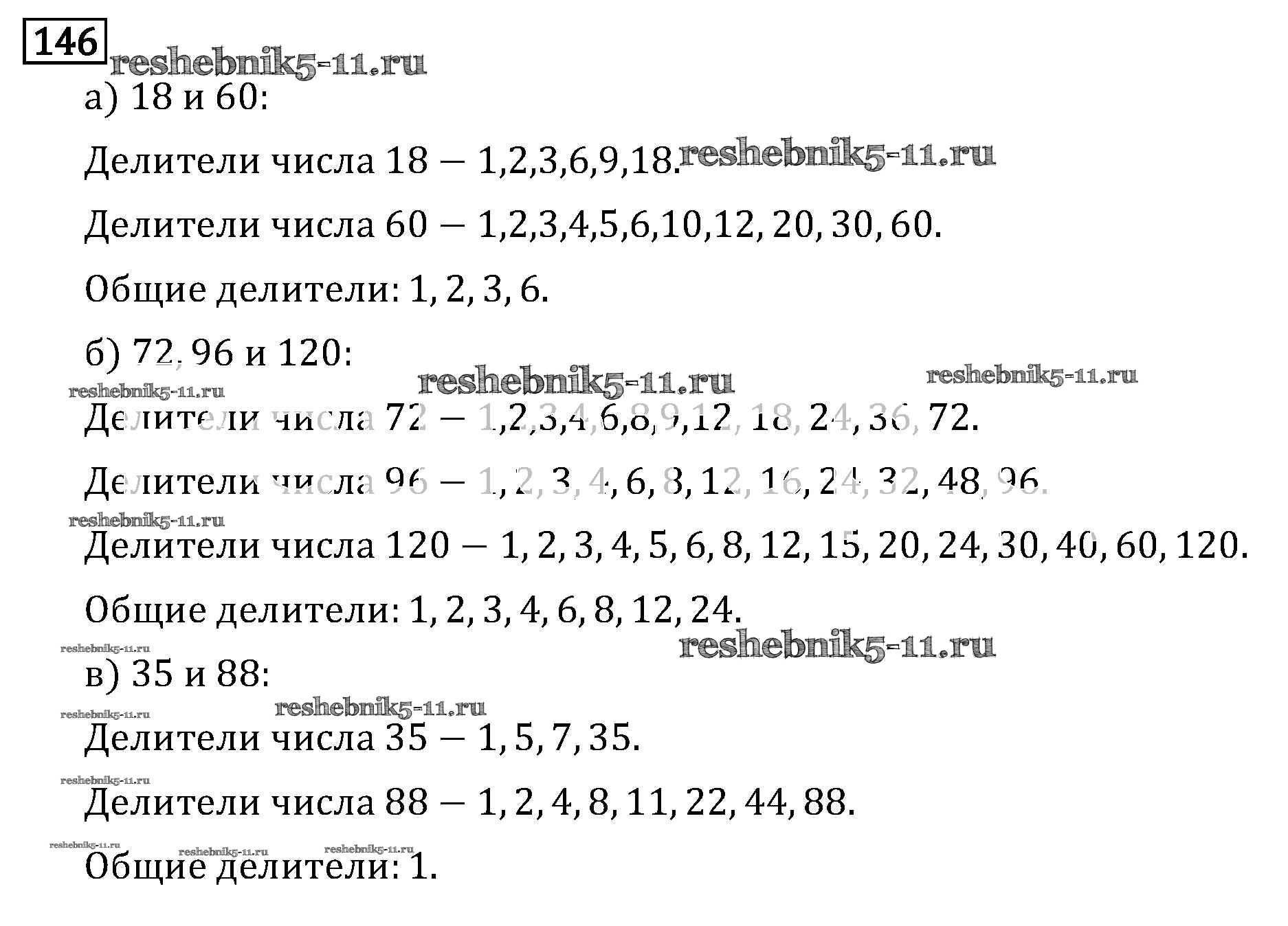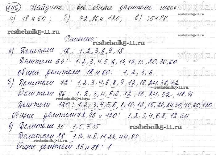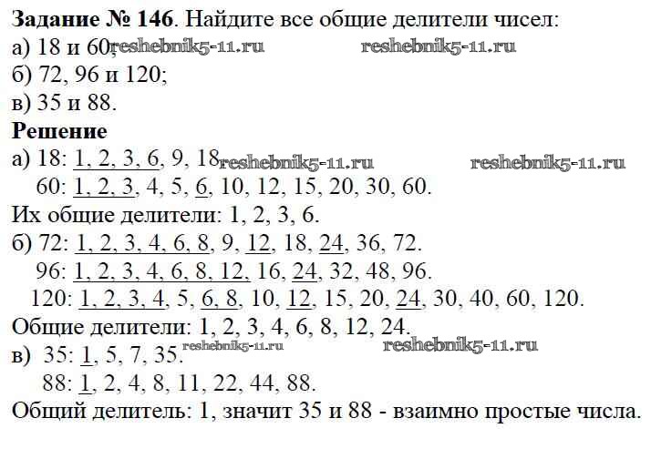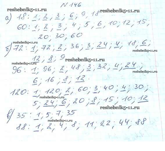 Готовая домашняя работа с ответами по Математике за 6 класс Виленкин, Жохов, Чесноков, Шварцбурд Учебник Мнемозина 2014 ФГОС - §1. Делимость чисел 146