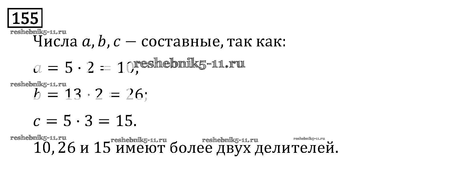 Готовая домашняя работа с ответами по Математике за 6 класс Виленкин, Жохов, Чесноков, Шварцбурд Учебник Мнемозина 2014 ФГОС - §1. Делимость чисел 155